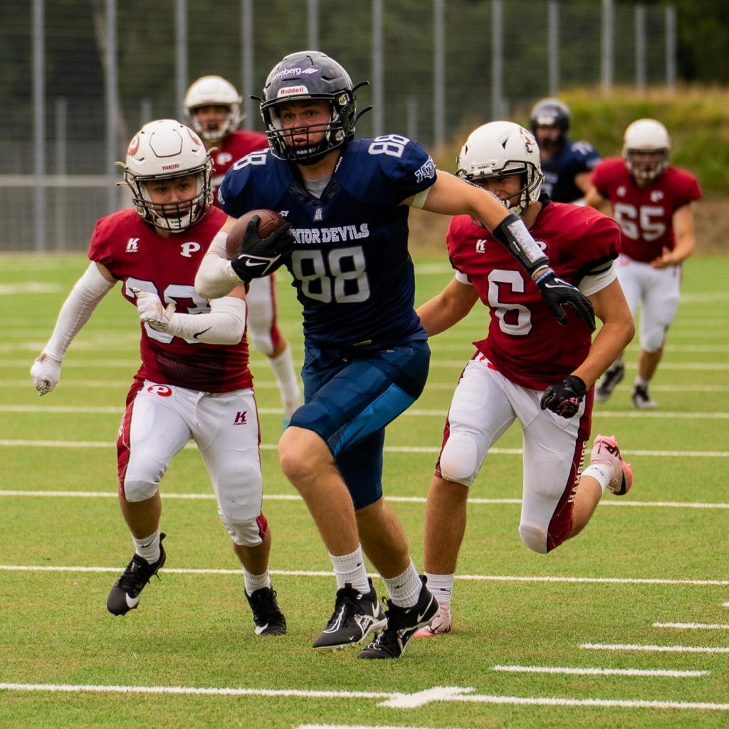 Obwohl ich noch nicht so lange spiele, habe ich in der kurzen Zeit nicht nur gelernt wie man ein guter Tight End/ Receiver wird, sondern auch das nötige Football-Knowledge aufgebaut, um gegen erfahrenere Spieler dran zu bleiben!